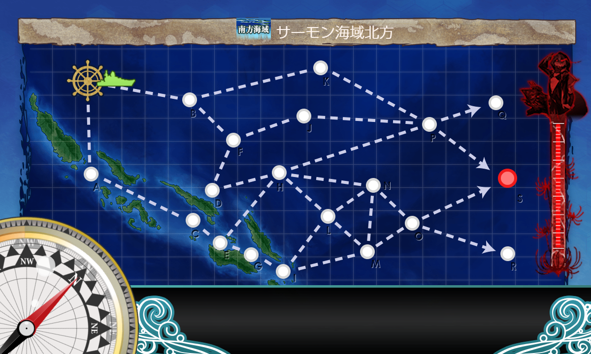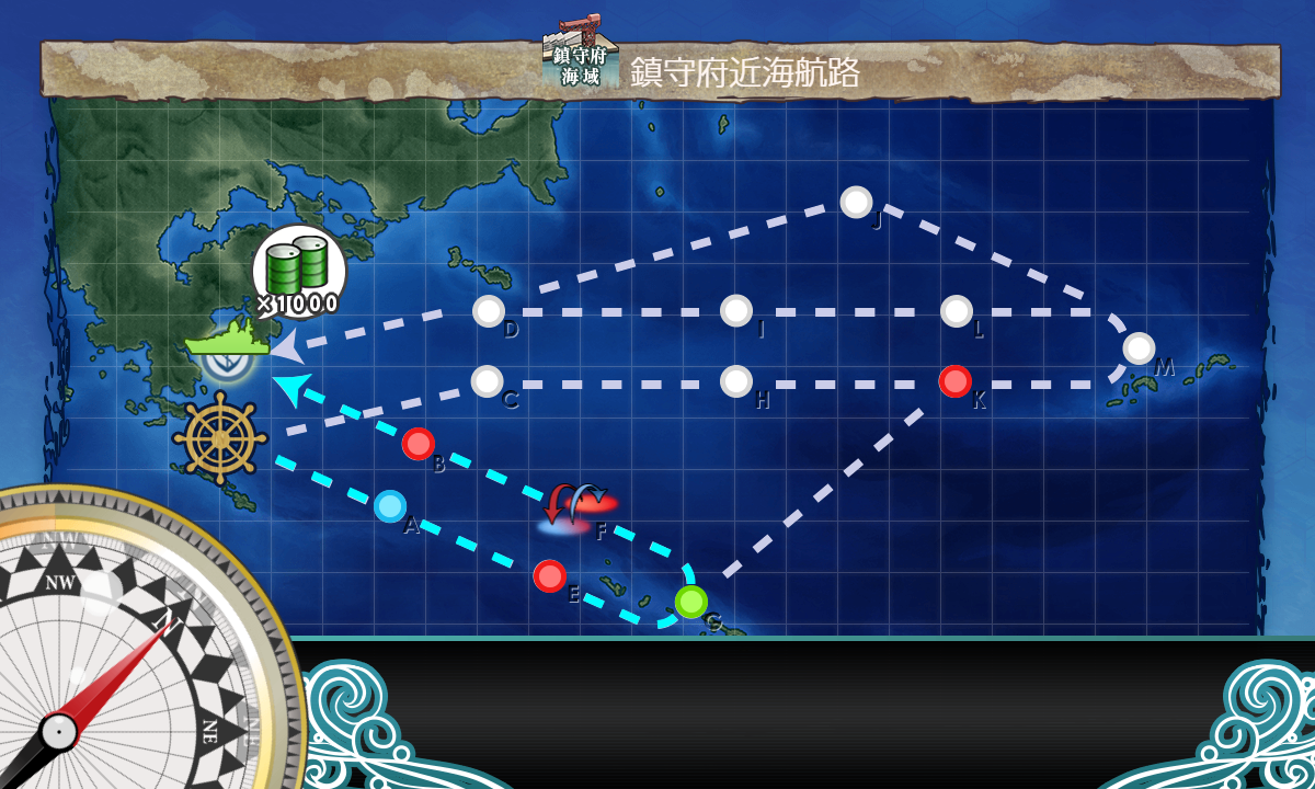 A>E(潜水マス)>G(弾薬マス)>F(航空戦マス)>B>ゴールのルートをとります