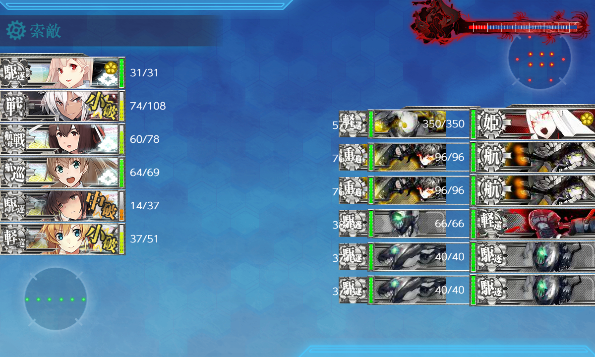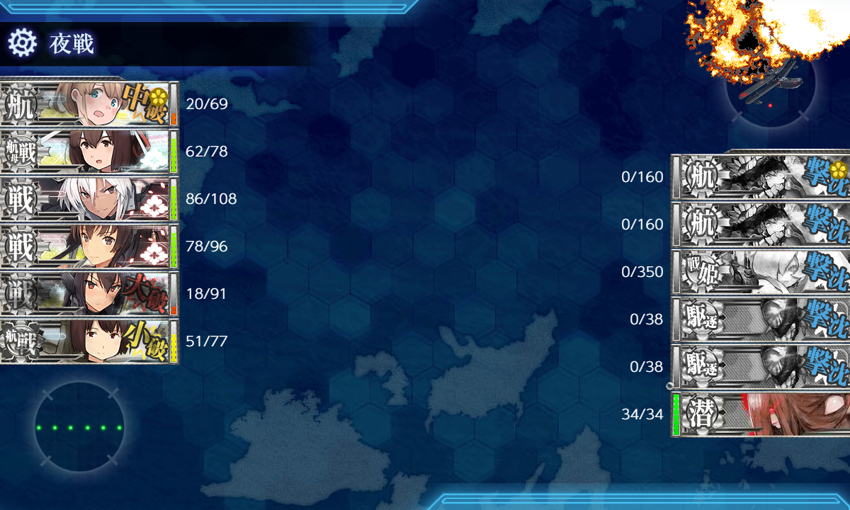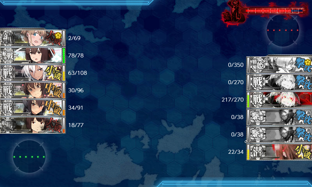 やはり空母による航空戦で敵を減らしておかないときついと感じました。