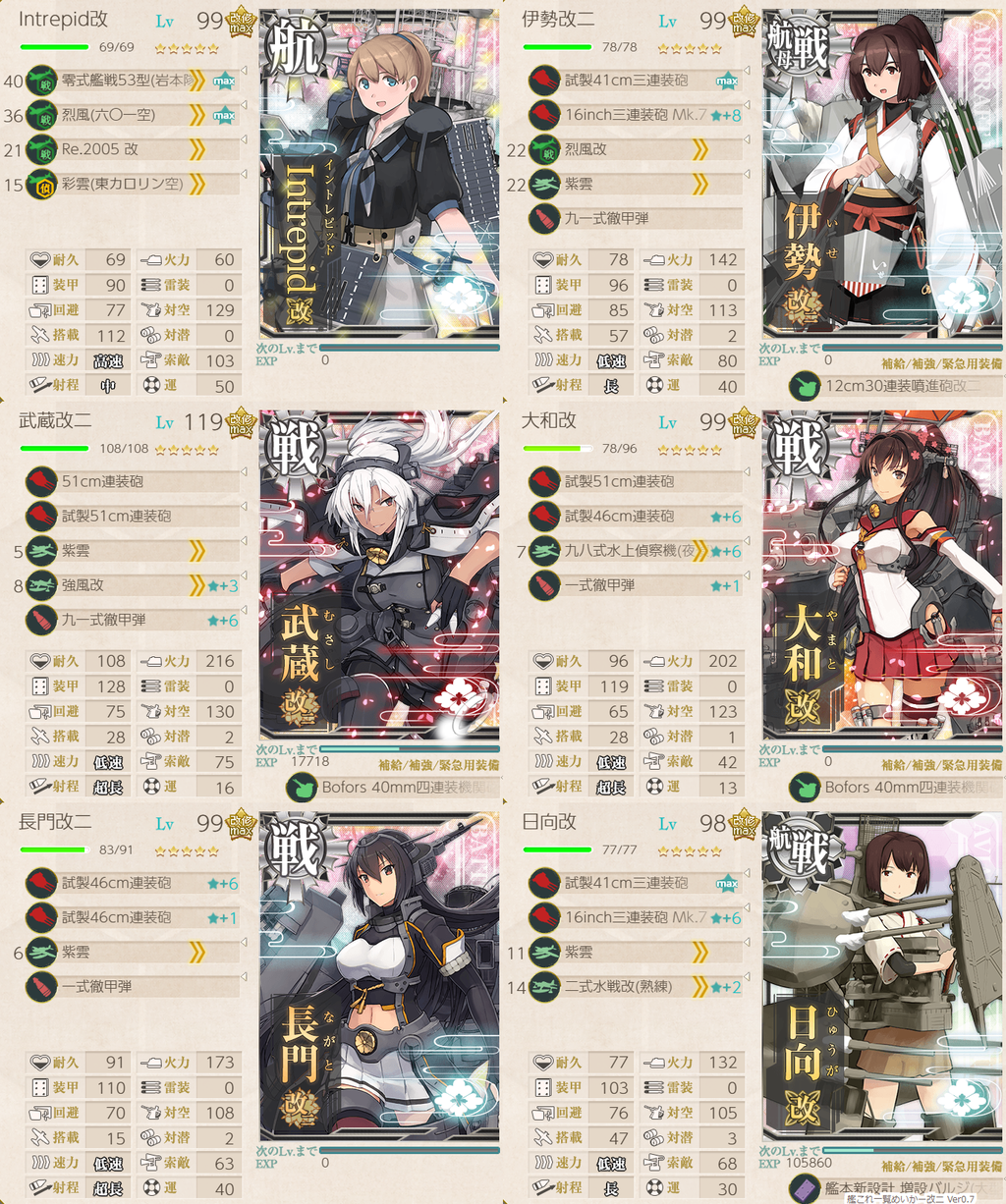 伊勢改二、戦艦1、航巡1、軽巡1、駆逐2です