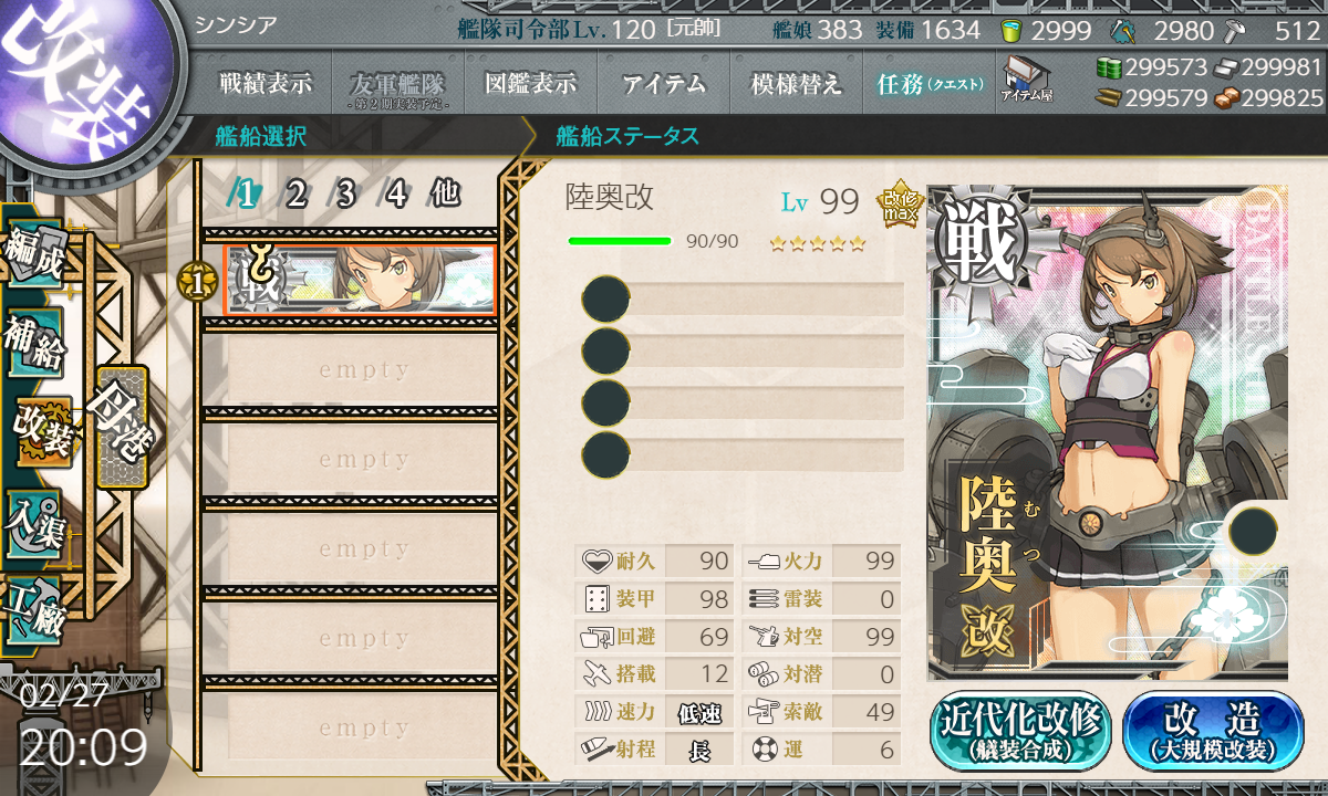 2019年03月10日 【艦これ】いまさらながらですが陸奥改二にしてました( いまさらですが、陸奥改二にしてました( アップデートあった日にw 設計図だけで改装できるのは 最近ではありがたいですね。 弾薬と鋼材は結構持って行かれますが 陸奥改二任務も早めに終わらせて 41cm連装砲改二も入手 【長門、いい? いくわよ! 主砲一斉射ッ!】 かっこいいですね~