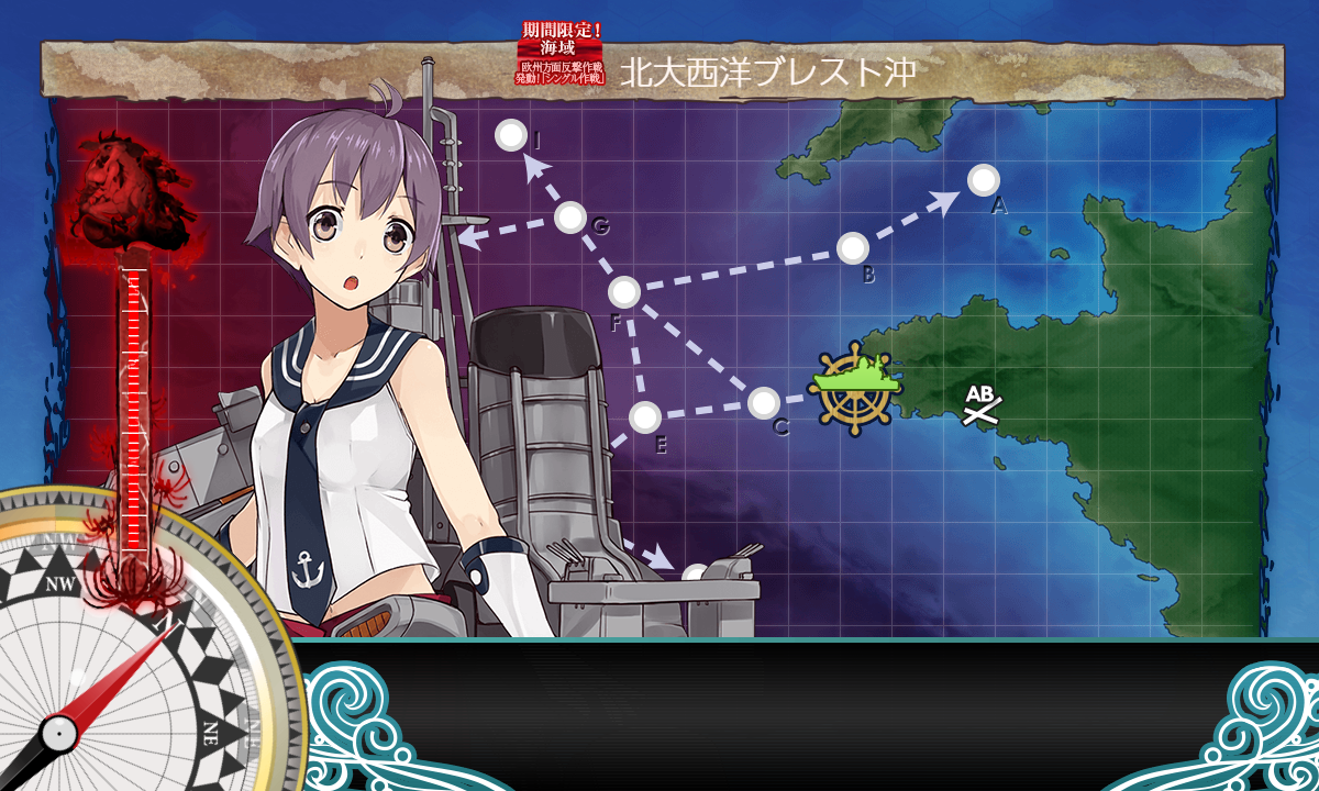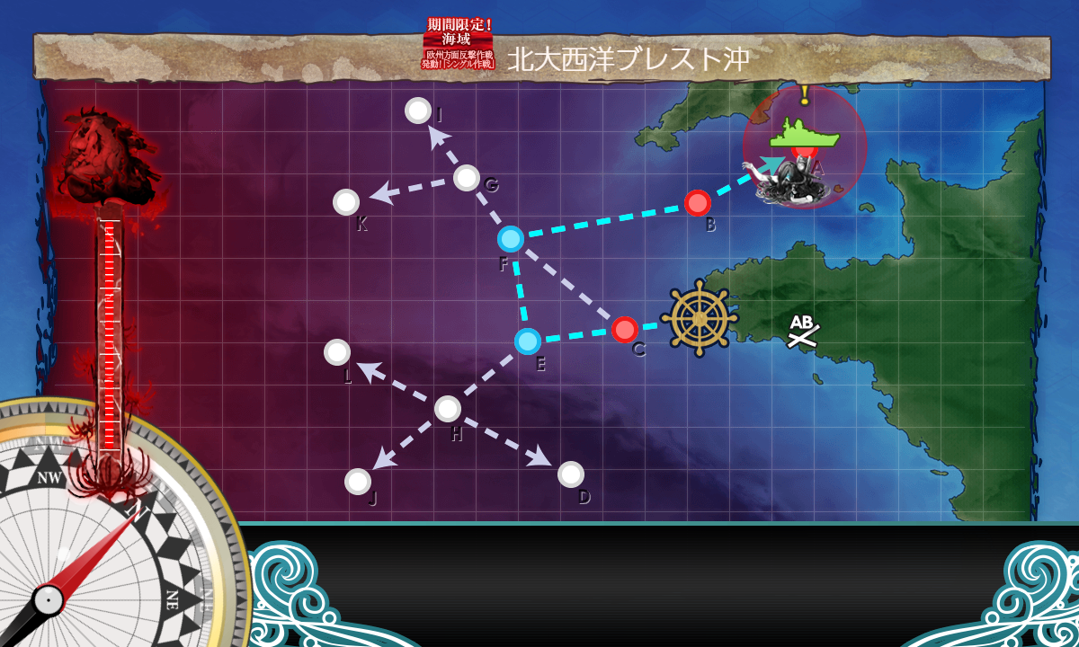CマスとBマスは警戒陣で、ボスマスは潜水艦なので単横陣で