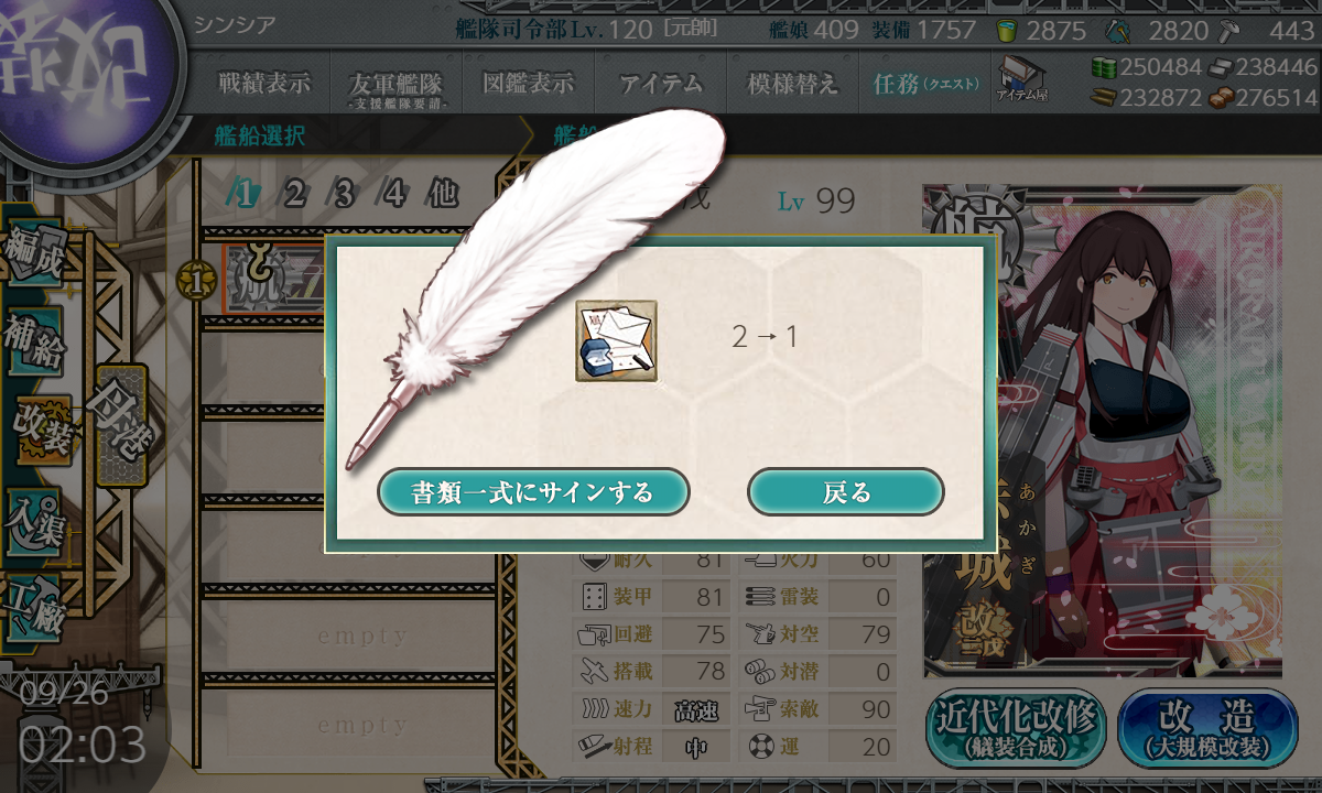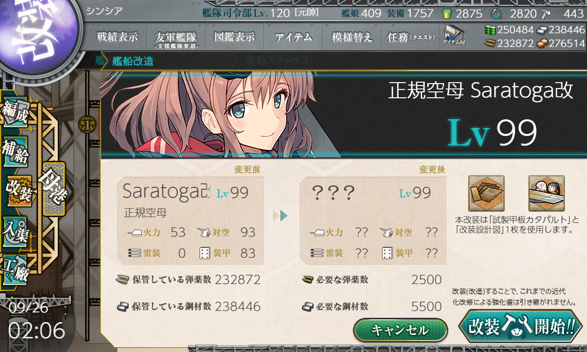 2隻目の赤城とSaratogaをそれぞれ改二戊とMk.II Mod.2にしちゃおうとか