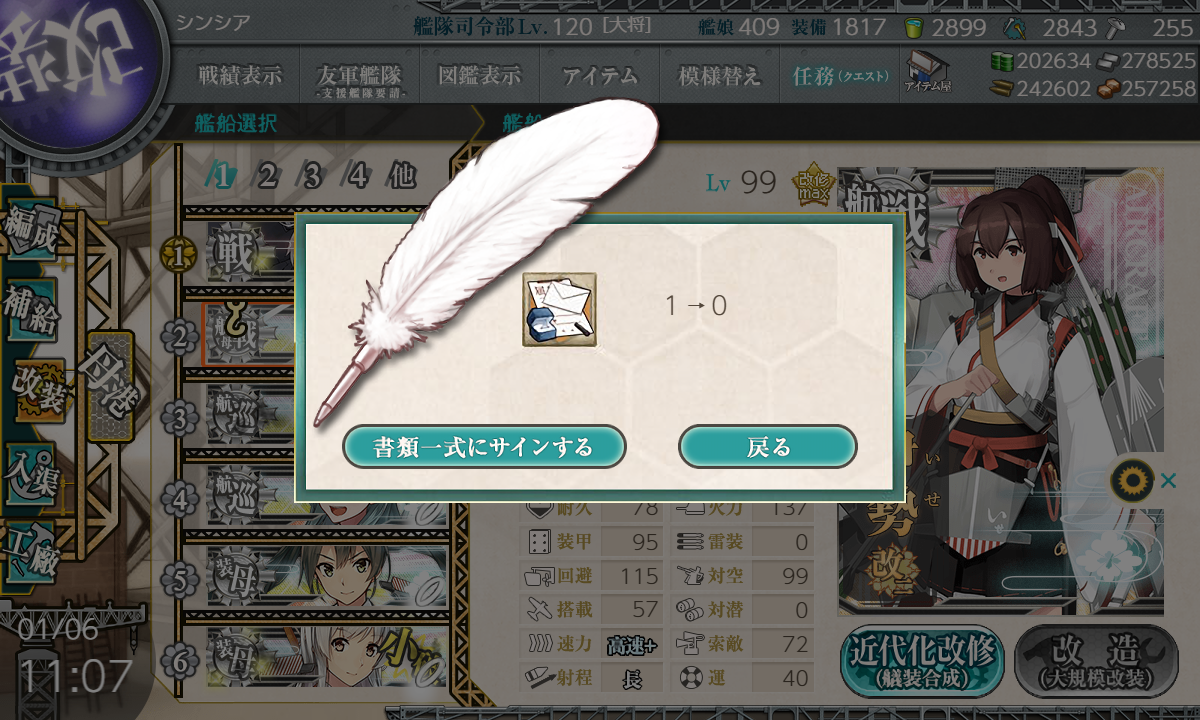 2020年01月08日 【艦これ】伊勢改二とケッコンカッコカリ Lv99になってからずいぶん経ちましたが 課金して指輪を買ったので 伊勢改二とケッコンカッコカリします かなりの経験値がもったいないことになってしまいましたが これで今後も大活躍してくれるでしょう~