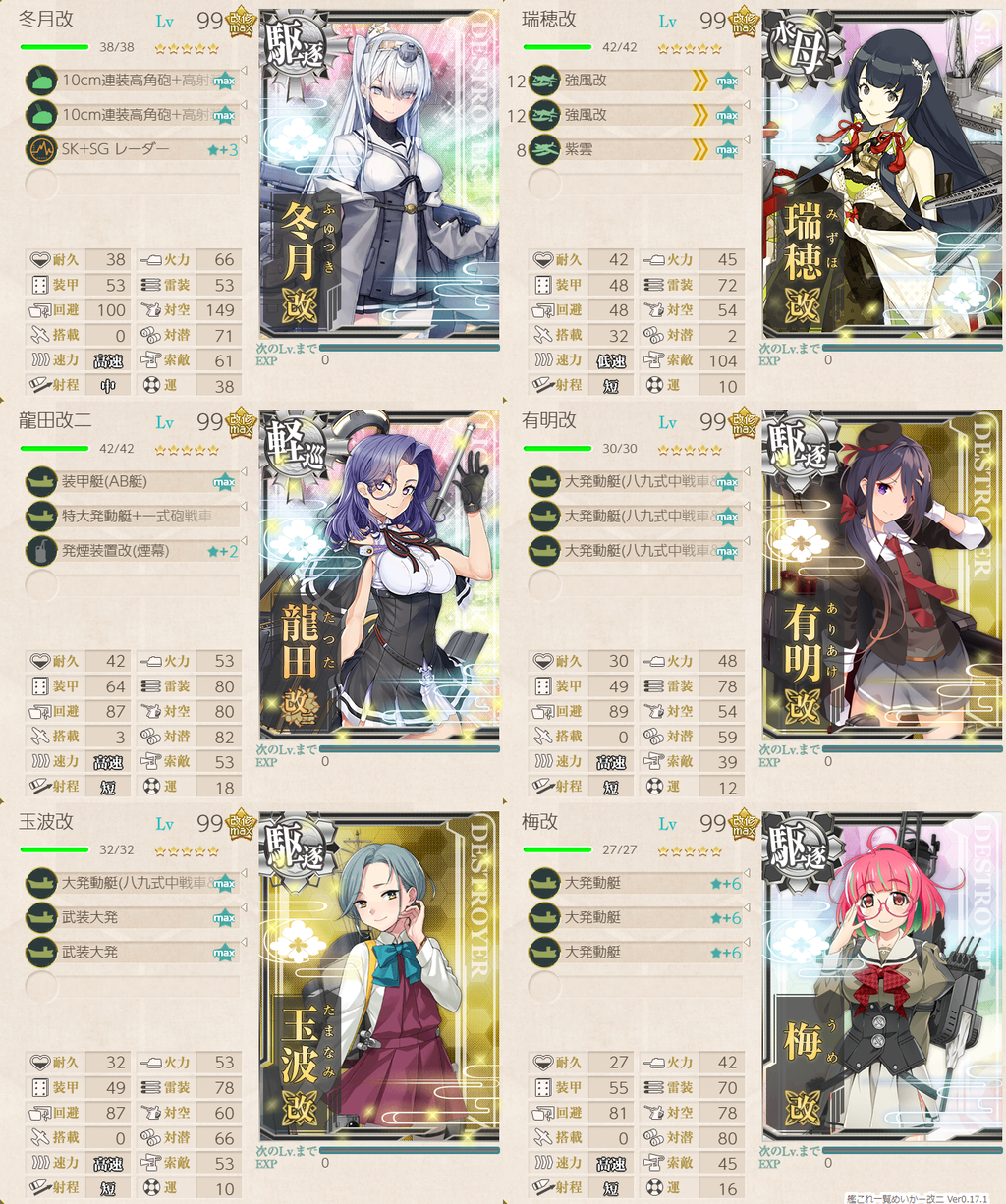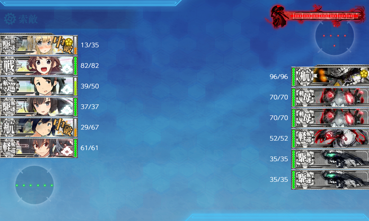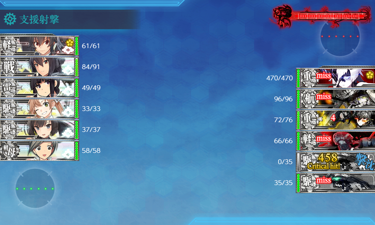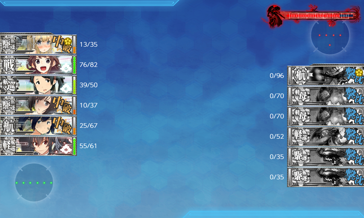 2023年08月11日 【艦これ】 E-2 南沙諸島沖/カムラン湾沖【朝日、再び】 甲作戦 ギミック(第一ボス出現) さて、E-2ですまずはギミックからC2マス 潜水 S勝利×1回J2マス 潜水 S勝利×2回Gマス 水雷 S勝利×2回F2マス ネ改 S勝利×1回まずはC2マス・J2マス【ABB2CC2】(B:空襲 C:通常 C2:潜水(1回))【ADHIJ2】(H:空襲 I:通常 J2:潜水(2回))でっぱ~つC2マスS勝利J2マスS勝利1回目J2マスS勝利2回目次はGマス・F2マス【ADG】(G:通常(2回))【ABB2EFF2】(B:空襲 E:潜水 F:空襲 F2:通常(1回))F→F2要索敵 足りないとF1に逸れますF2マスは道中支援出しますGマスS勝利1回目G2マスS勝利2回目F2マスS勝利次は輸送です