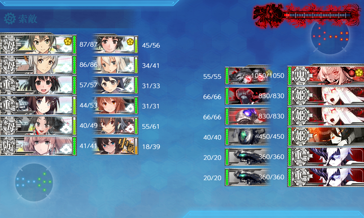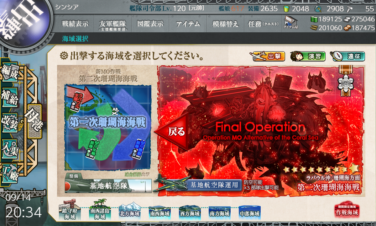 2024年09月14日 【艦これ】 E-5 ラバウル沖/珊瑚海方面【第二次珊瑚海海戦】 丙作戦 第四ゲージ さて、第四ゲージです【EGHSS1TV】(E:潜水 H:空襲 S:混成(PT) S1:空襲 T:通常 V:ボス(陸上))【MO攻略部隊】要索敵W夕張、Nelsonはサブです煙幕はボス前(Tマス)1部隊目:ボスマスに集中2部隊目:Tマスに集中3部隊目:Eマスに集中でっぱ~つボス前こわいボス編成ネルソンタッチwwwももちぱっわー友軍キタ━━━━(゚∀゚)━━━━!!S勝利、丙だから楽ちん…っていいたいけどそれなりに被害大きいですね…そしてラスダンわりとボコられましたが無事撃破!次はボス出現ギミックかな…