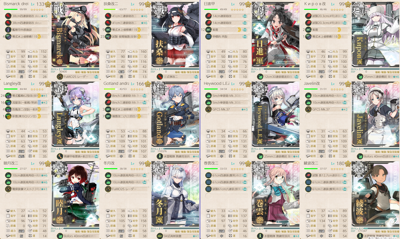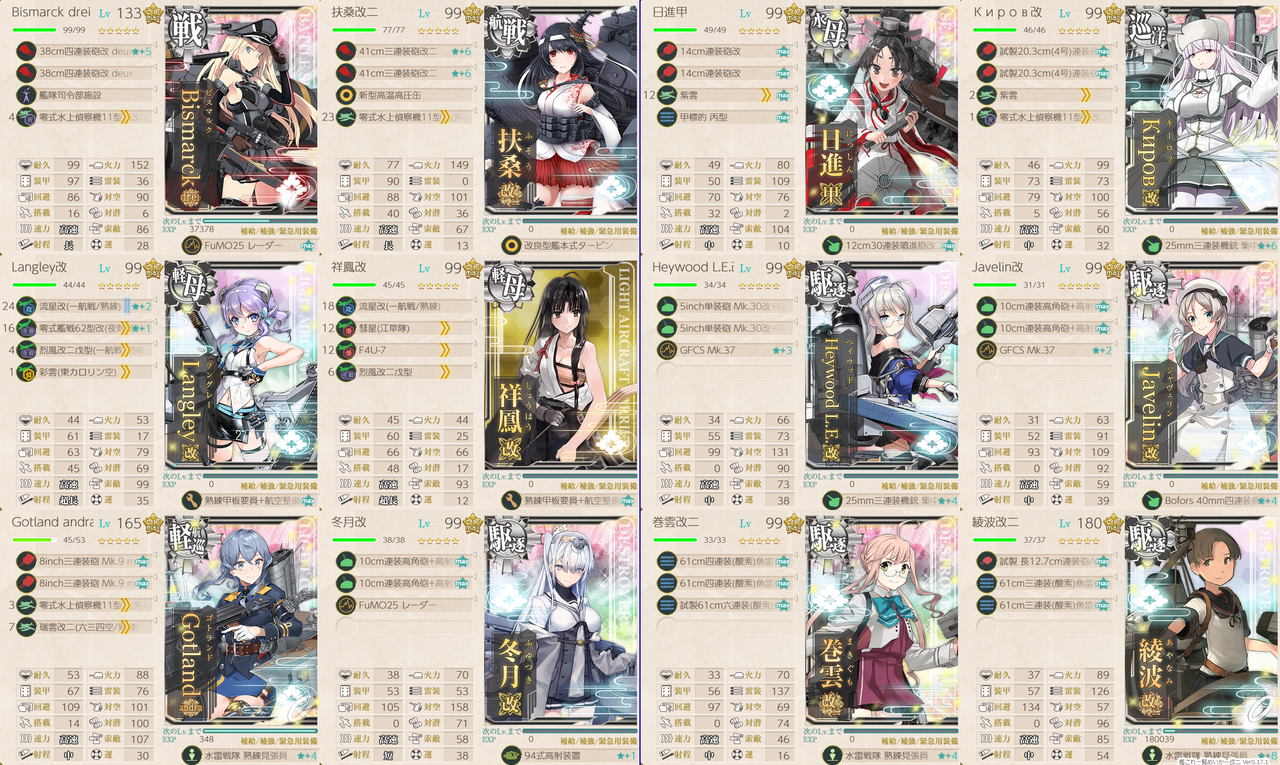 戦艦2軽空2軽巡1駆逐1【欧州遠征収容艦隊】水上打撃部隊