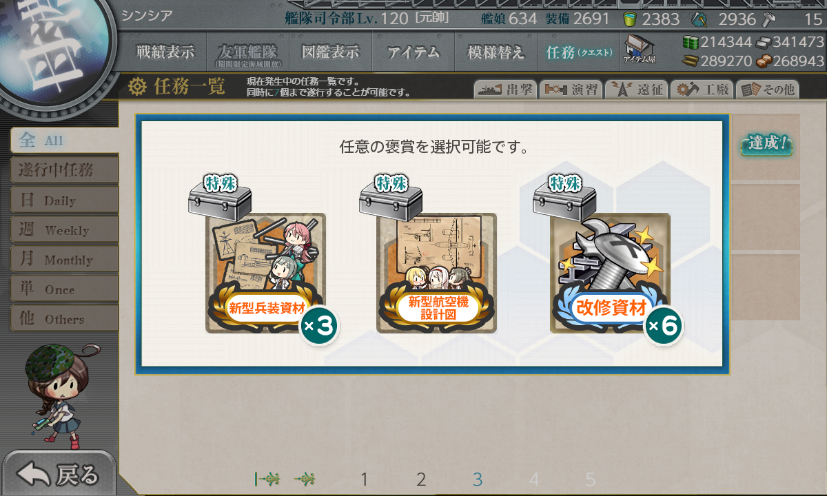 2024年11月13日 【艦これ】 2024 秋刀魚祭り【拡張任務】新型陸軍対潜哨戒機配備! 「山汐丸」「熊野丸」「あきつ丸改」何れかを旗艦にし、第1スロットに「三式指揮連絡機改☆7↑」を装備秋刀魚8, 新型航空兵装資材2, 開発資材18を準備九九式艦爆×4を廃棄 「艦隊これくしょん」カテゴリの最新記事