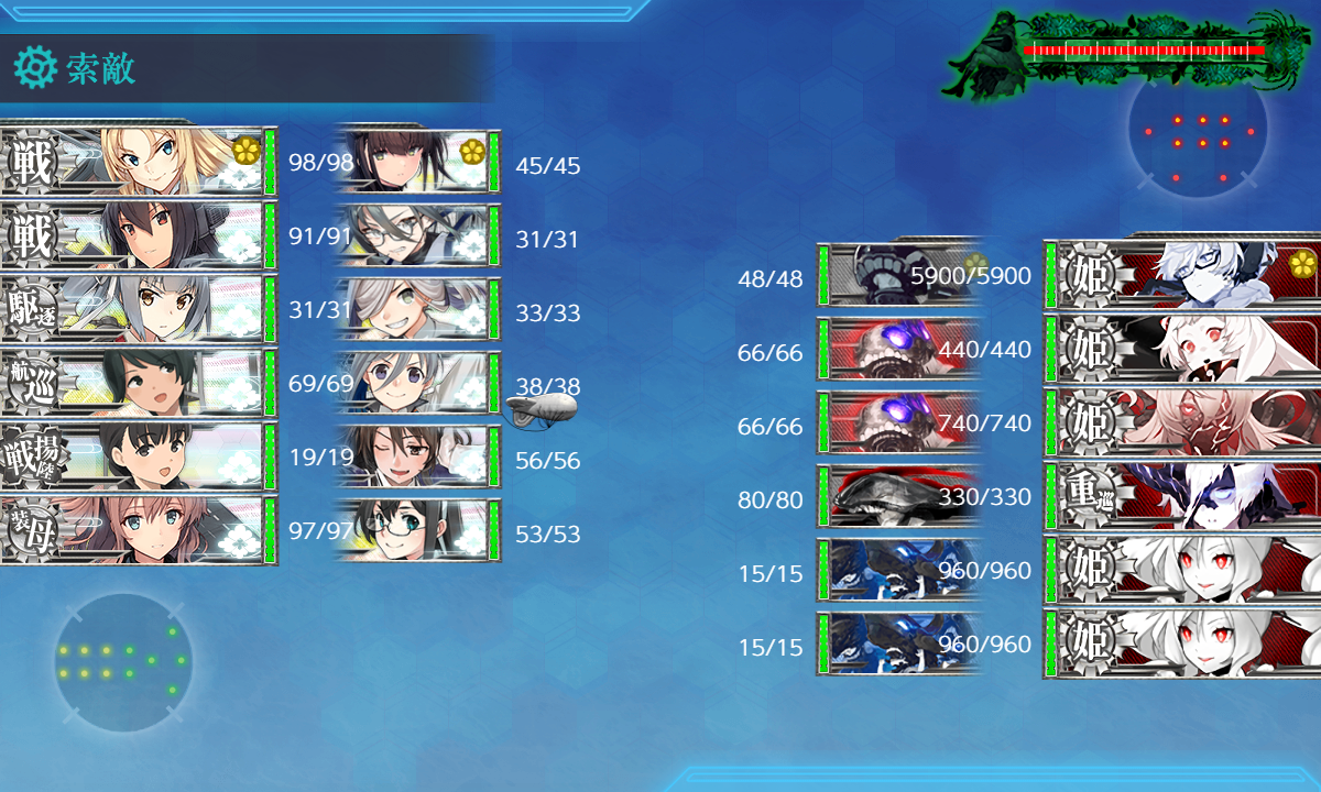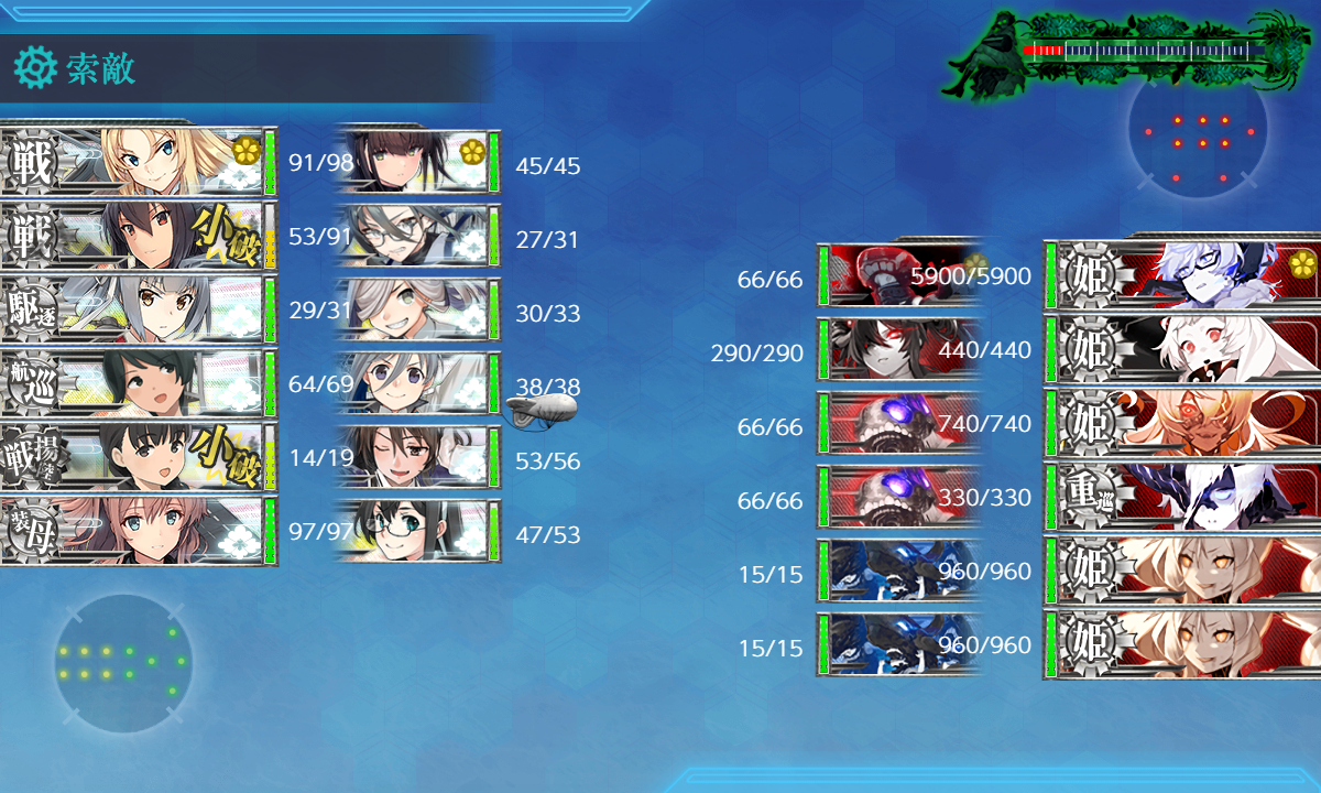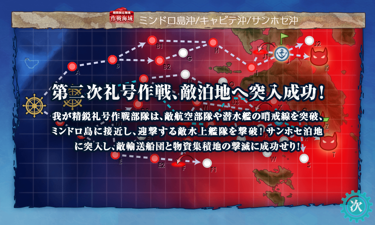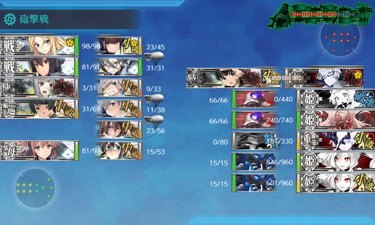 2025年04月10日 【艦これ】 E-5 ミンドロ島沖/キャビテ沖/サンホセ沖【第二次礼号作戦】 乙作戦 戦力ゲージ(三本目) さて、第三ゲージです【礼号作戦部隊】水上打撃部隊【LMU1U2U3XP2RZ】(M:通常 U1:空襲 U2:潜水 U3:空襲 X:PT R:通常 Z:ボス(集積))第四→第三→第一→第三→第四→第四→第二(ネルソンタッチ)煙幕はMマス1部隊目:Mマスに集中2部隊目:U2マスに集中3部隊目:Rマスに集中ごたいめ~んボス編成大破しながらもももち顔面パンチ!ラスダンラスダン編成ももち大破!?顔面パンチ撃破!乙ですね…いよいよラストステージです 「艦隊これくしょん」カテゴリの最新記事