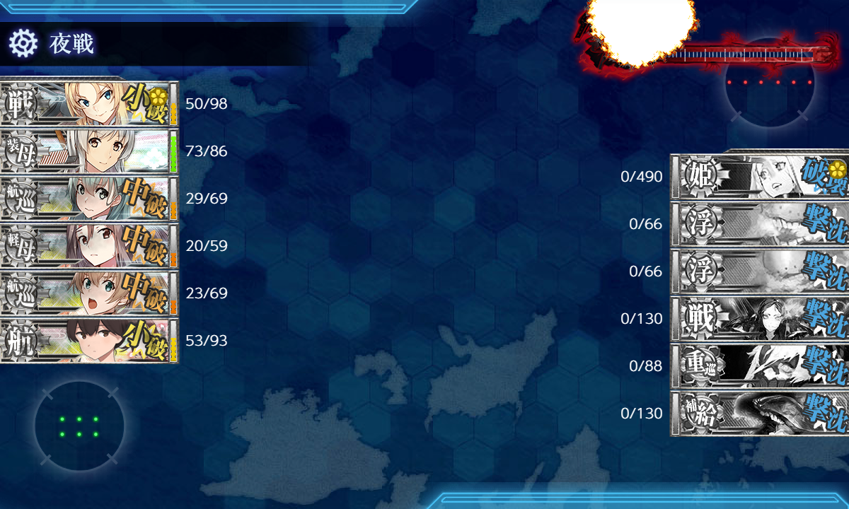 2023年07月03日 【艦これ】2期 4-5 深海東洋艦隊漸減作戦 【Extra Operation】 Nelson高速+ 2023/07/03版 4-5 深海東洋艦隊漸減作戦 【Extra Operation】 Nelson高速+ですあくまで自分用の編成記録です久しぶりに更新しますボスで火力不足かもとのことでしたがいけそうな感じ【ADHT/CDHT】(D:対潜 H:通常 T:ボス)対潜マスは瑞鳳改二乙で敗北回避穴開けてれば先制対潜可能なはずNelsonは新型高温高圧缶を2つ採用し、高速+になっていることを確認道中大破撤退の原因となるHマスでネルソンタッチを採用。(ラスダンだけはボスマスでネルソンタッチをします)ラスダン編成撃破というわけでストレートで終了!