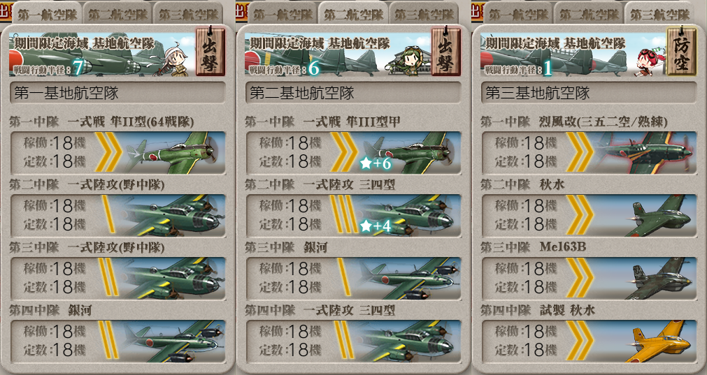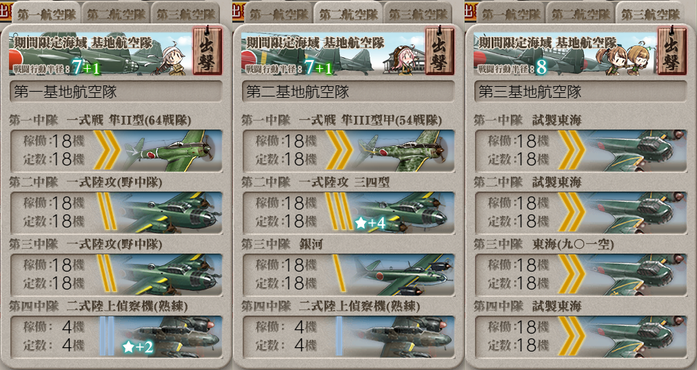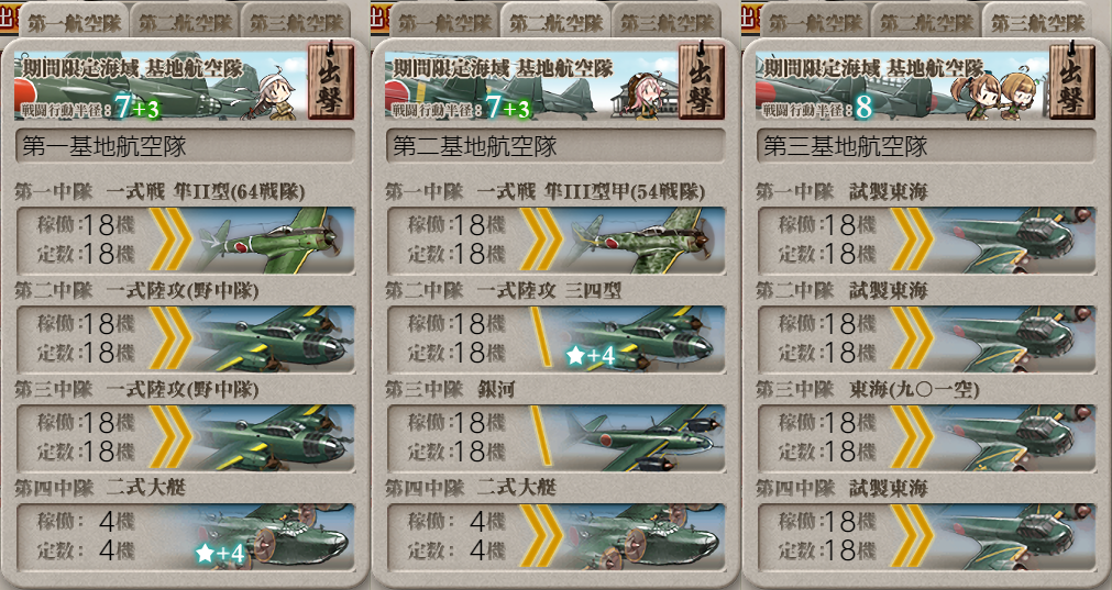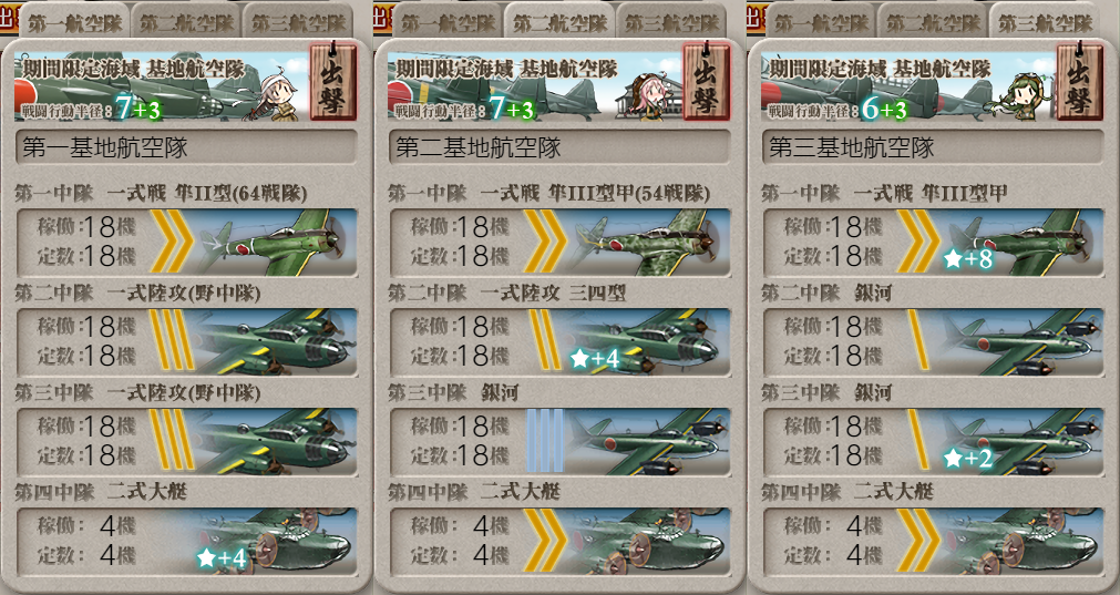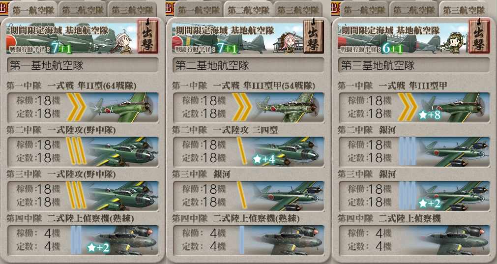 基地航空隊に疲労が付いたので休ませて