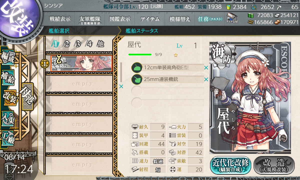 風雲改二の運改修にどどーんと海防艦を投入!