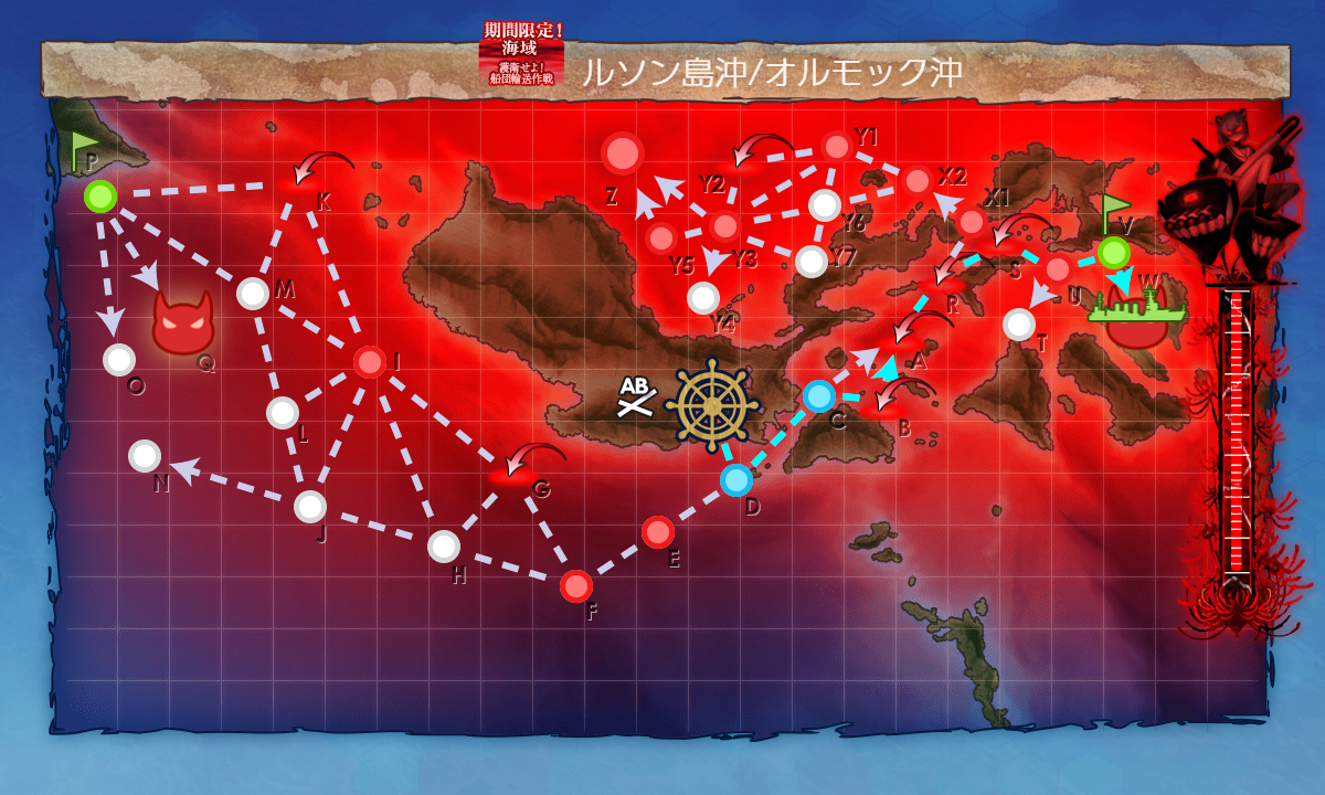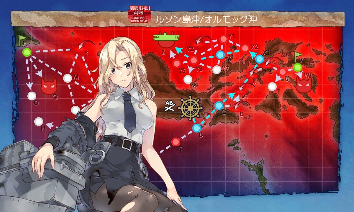 【DCAR”X1″”X2″”Y6″”Y3″Z】(A:空襲 R:空襲 X2:PT Y3:連合 Z:ボス)