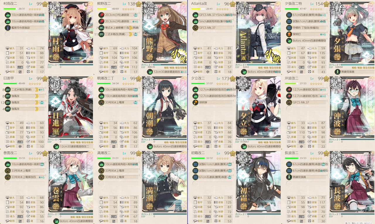 第二艦隊は道中PTとの駆け引き、あまりにボス戦が沼るなら考えないと…
