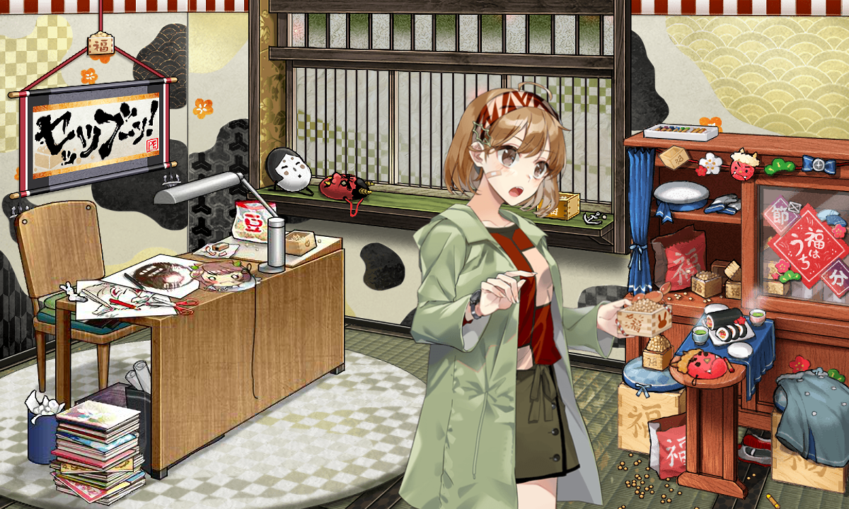 【艦これ】2021【節分mode】の伊47、迅鯨、鳳翔と私服modeの酒匂 そして朧も差分節分mode