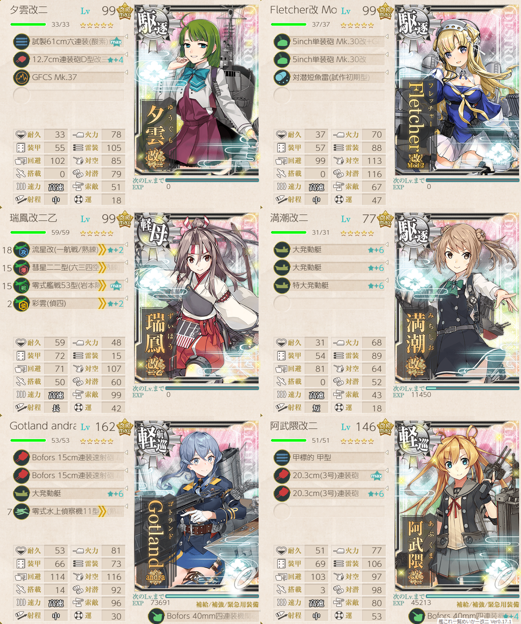 2021年11月25日 【艦これ】E-3 八丈島沖/房総半島東方沖 【八丈島沖絶対哨戒線】 甲作戦 戦力ゲージ(潜水鮫水鬼) さて、3ゲージ目です 航戦1軽空1駆逐5 【ATSUXZ】(A:対潜 T:空襲 U:通常 X:通常 Z:ボス)【横須賀防備隊 1部隊目:Xマスに集中 2部隊目:防空 3部隊目:ボス集中 でっぱ~つ 今回のラスボスさん まるゆはおいしい さて、壊になってましたが 1回取りこぼしてるのでHP1とか残りそうな 撃破! 無事、甲で終わりました あとはイントレさん掘りかなぁ
