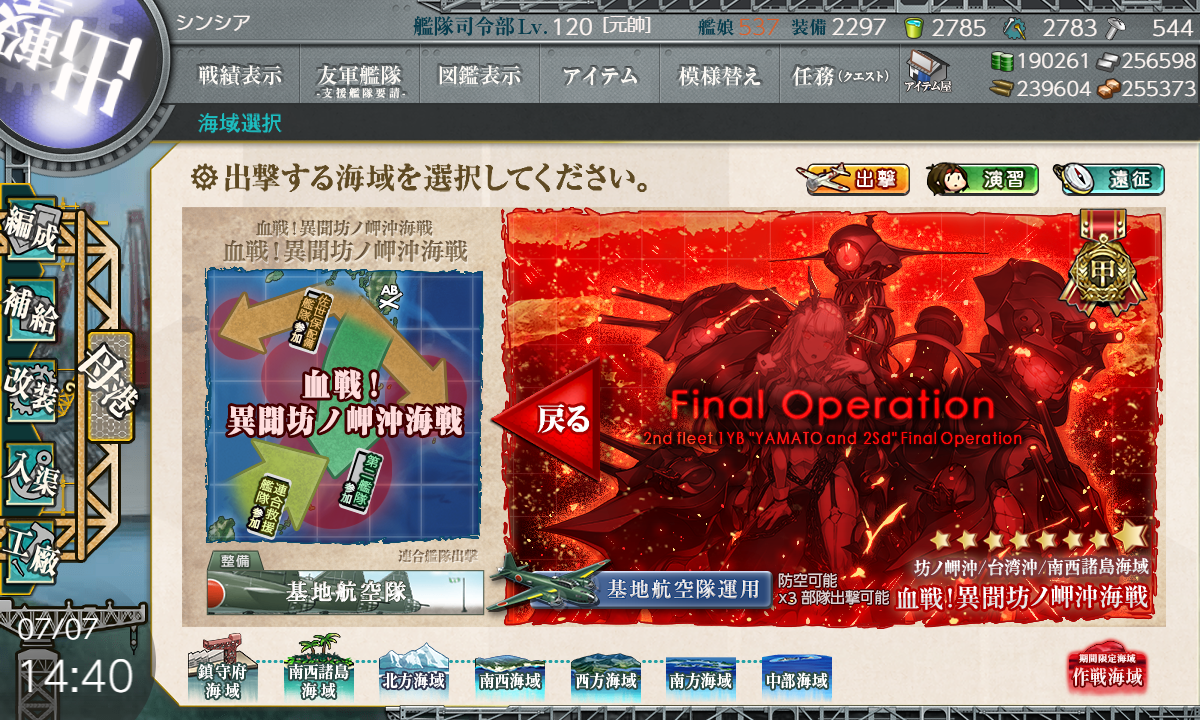 【QQ2WY1YY2Z1Z2Z】(W:潜水 Y1:空襲 Y:通常 Y2:空襲 Z1:通常 Z2:泊地 Z:ボス)