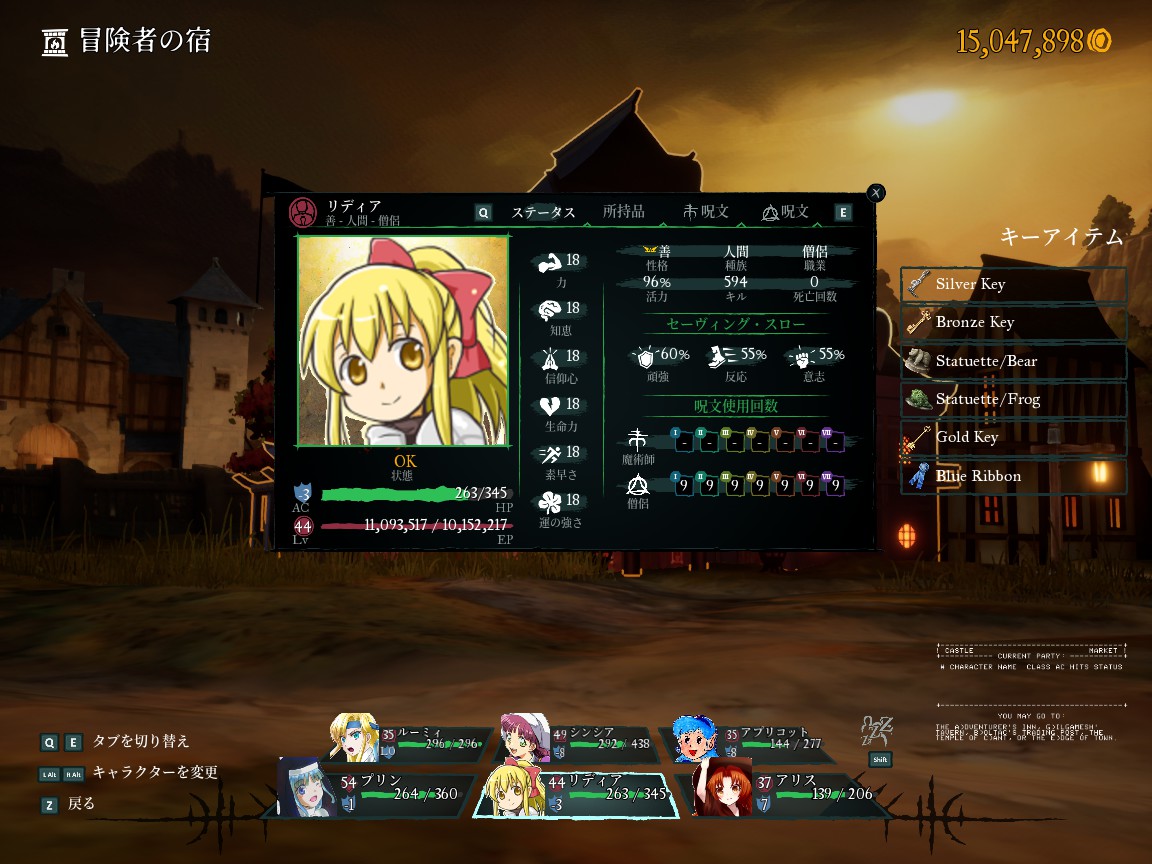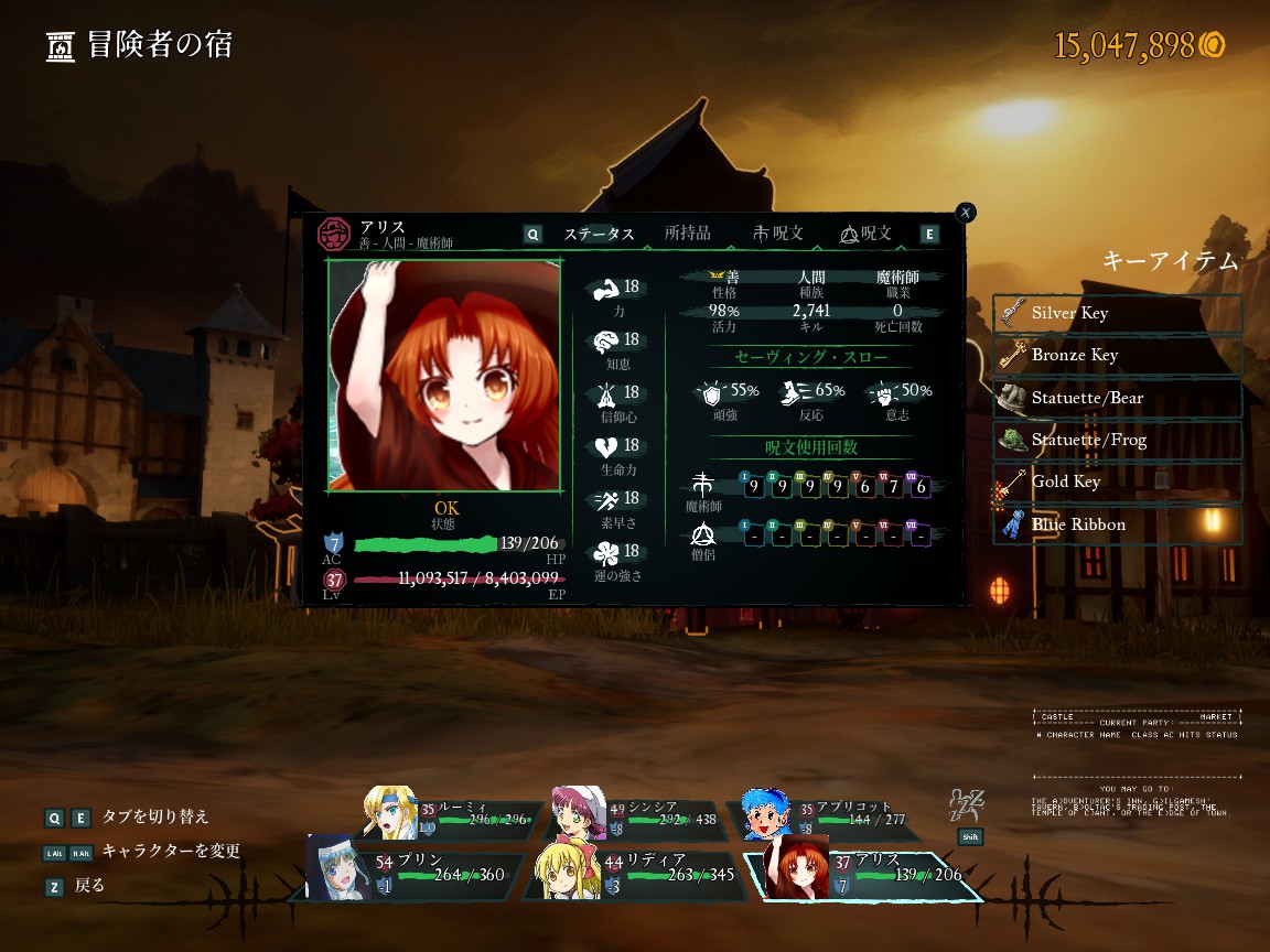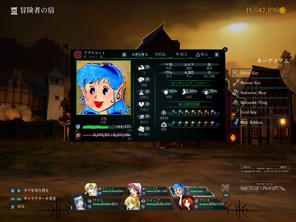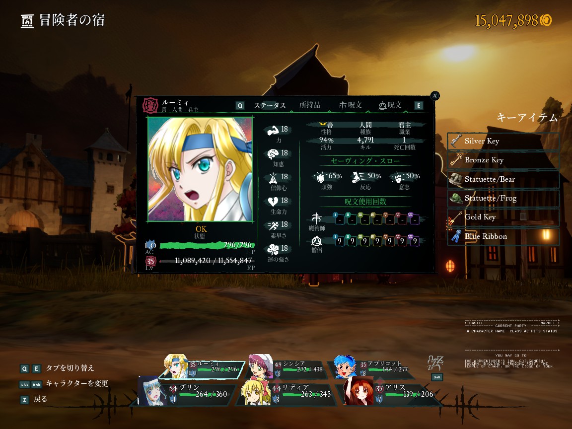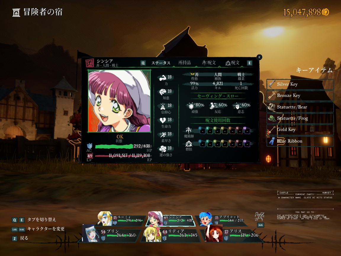 いったん部屋を出て、キャラをここにのこして中断し町に戻ります