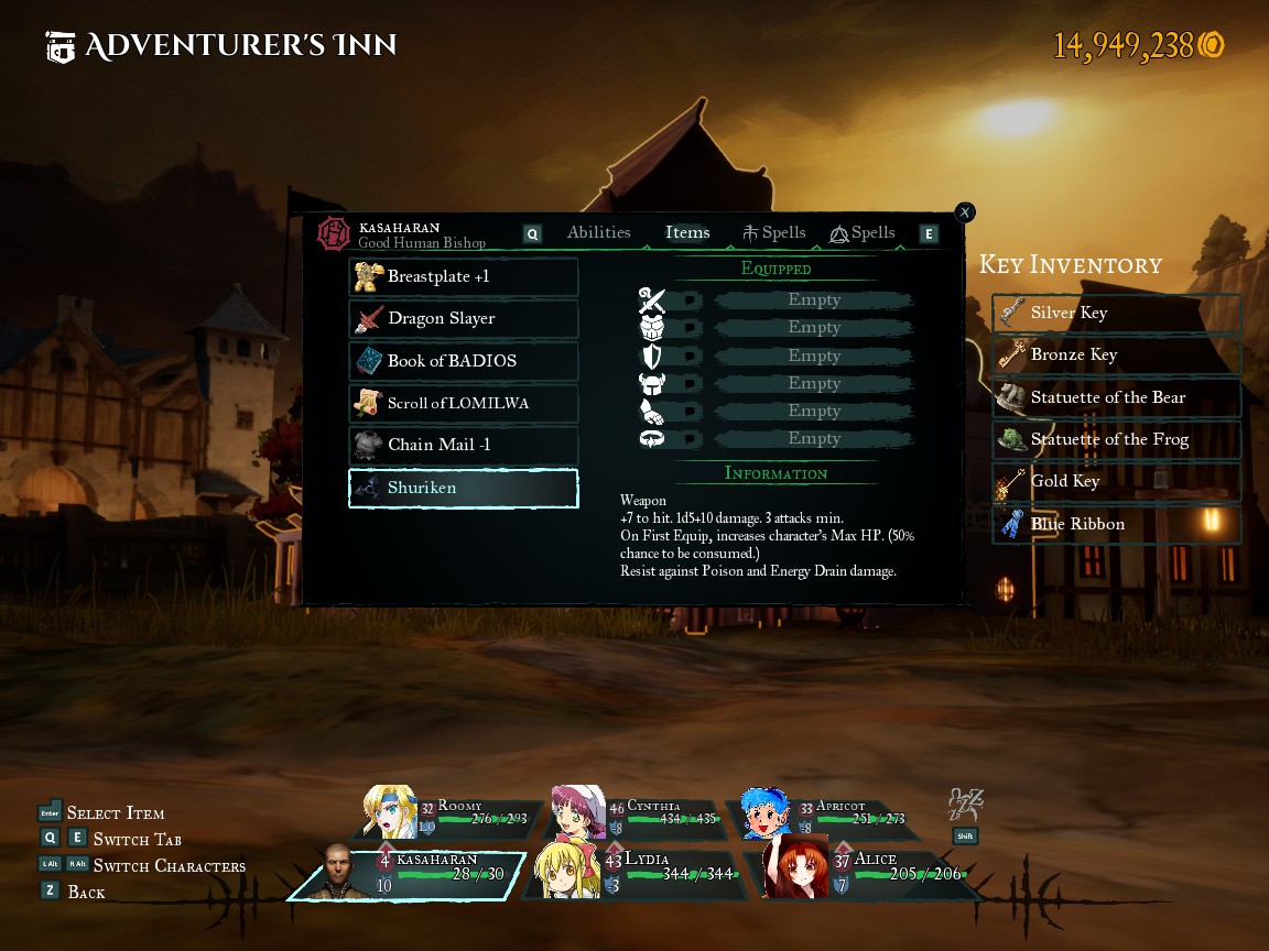 3種の神器(ムラマサ、ローズガーブ(君主の鎧)、手裏剣)や
